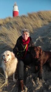 Als huisdieren hebben we diverse katten gehad en in 2007 kwam Guus in ons leven: een prachtige, grappige en lieve golden retriever (met hem sta ik op de foto). We hebben elf heerlijke jaren gehad met deze lobbes. Vanwege een ernstige hernia hebben we hem in de zomer van 2018 moeten laten inslapen. Wat een leegte liet die blonde jongen achter in ons leven….